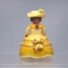 Son rire éclaire les jardins, sa robe rayonne comme un lever de soleil sur Versailles. Demoiselle Soleil, c’est l’élégance incarnée version jaune impérial: une tenue vive et raffinée, mêlant broderies dorées, nœuds travaillés et accessoires. Entre fille d’honneur d’un opéra baroque et héroïne d’un bal pastoral, elle attire tous les regards sans jamais hausser la voix. Une figurine qui respire la joie, la chaleur… et une pointe d’audace aristocratique.