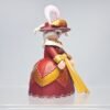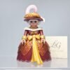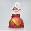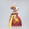 Cette vicomtesse Rouge semble sortie tout droit d’un opéra de cour ou d’un tableau de Jean-Antoine Watteau. Son large nœud soleil, ses motifs baroques dorés et sa coiffe à plume rose et à plume dorée signent une allure affirmée, entre faste et féminité. Elle ne parle pas fort… mais on l’écoute quand même.